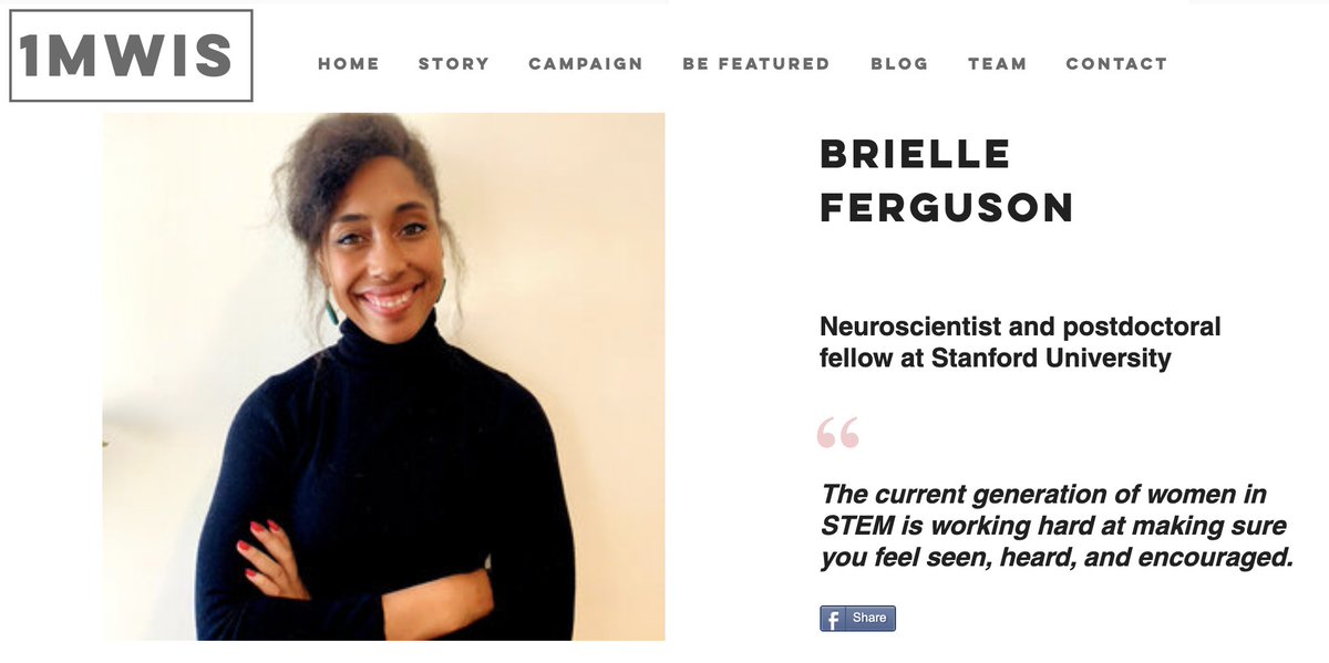 Hey Brielle Ferguson! She is a Neuroscientist and postdoctoral fellow. Her goals are to better understand circuits in the brain that support cognition & identifying pathways for intervention in psychiatric diseases.