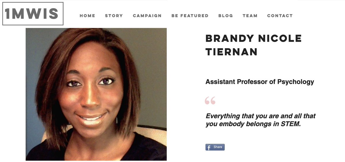 Meet Brandy Nicole Tiernan! She is an Assistant Professor. She is a professor, scholar, & mentor. She teaches classes in cognitive neuroscience, psychopharmacology, & cognitive psychology. Wow, what a role model!