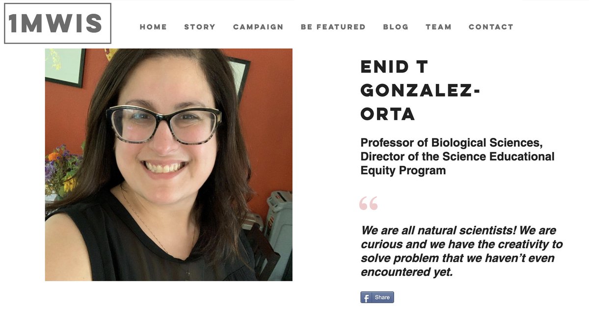 Welcome Enid T Gonzalez-Orta! She is a Professor of Biological Sciences. She teaches students microbiology and has a small research lab where they study how microbes function in soil communities. Wow, what a role model!