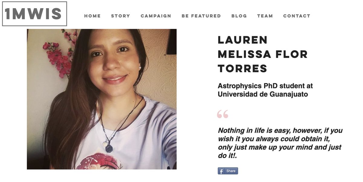 Hey Lauren Melissa Flor Torres! She is an Astrophysics PhD student. She’s studying host-stars of exoplanets by using observations from the Optical Telescope called TIGRE. Wow, what a role model!