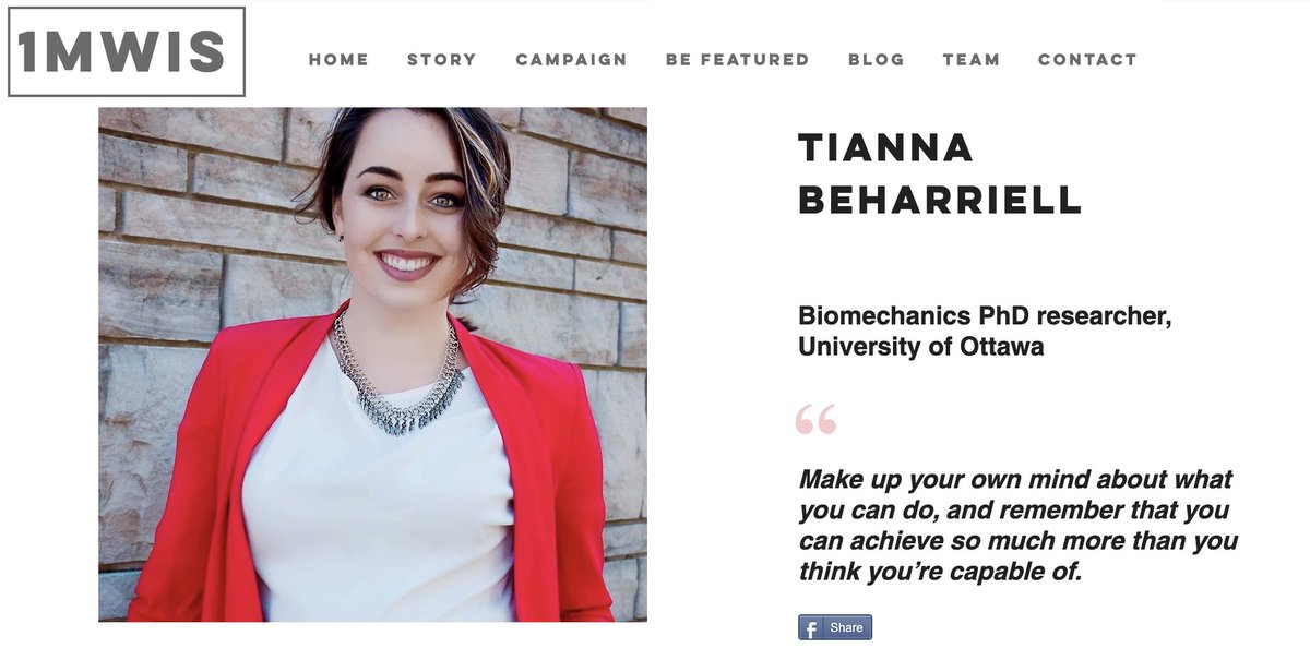 Meet Tianna Beharriell! She is a Biomechanics PhD researcher. She's interested in establishing relationships between patterns of movement generation at the muscle-level and whole-body movement patterns. Wow, what a role model!