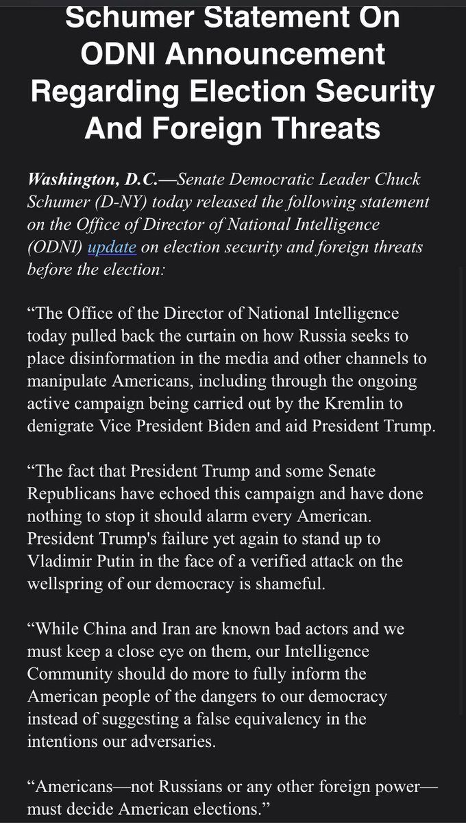 -Today, after more details were made public, Warner issued statement w/ Rubio; Pelosi/Schiff issued separate, more sharply worded one; 0 from Schumer yet