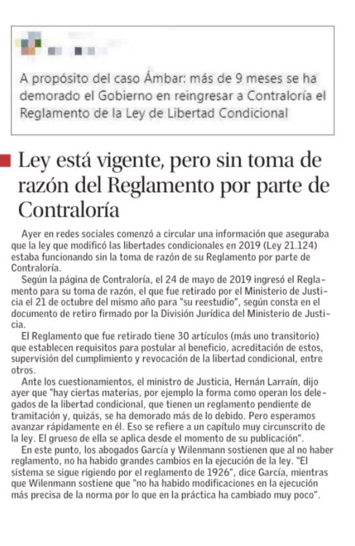 @MinjuDDHH retiró Reglamento de nueva Ley de Libertad Condicional desde Contraloría el año pasado y eso ha evitado que entren en funciones los delegados de libertad condicional.