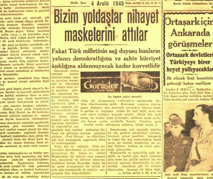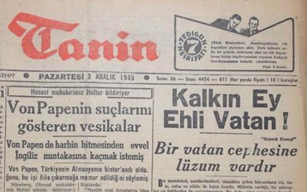 3 Aralık 1945 günü, Vatan Gazetesi'nde Hüseyin Cahit Yalçın imzasıyla, "Kalkın ey ehl-i vatan" başlıklı bir makale yayınlandı.
