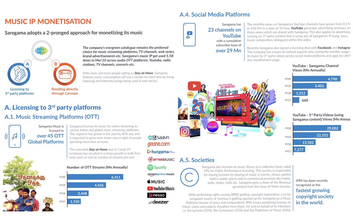 ...users in 16-24 yrs age group listened to 23.9 hrs per week on average. 81% users engaged with free audio streaming services. Currently Saregama charges platforms on a per stream basis plus a share of advertising revenues for the advertising based free service.