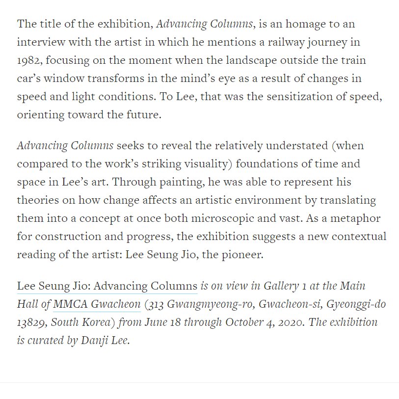 "Emerging with the avant-gardes of the 1960s, when the world seemed to be brimming with aspirations for a new future, Lee Seung Jio (1941โ1990) steered Korean geometric abstraction forward."