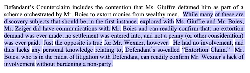 Both Dershowitz and Giuffre want testimony from Wexner and Zeiger, the order notes.