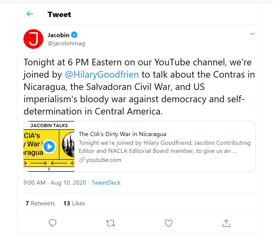 Jacobin also co-sponsored a "Socialism" Conference featuring US govt-funded regime-changers and open calls for overthrowing Nicaragua's socialist gov't