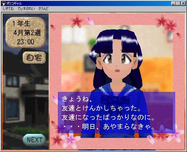 Polyco Gal, a sort-of-game more in line with contemporary hits like Petz, only you monitor the life of a schoolgirl. Also an early example of Mine Yoshizaki working with Konami (e.g., the Twinbee manga before this, Otomedius later) archive.org/details/Polyco…