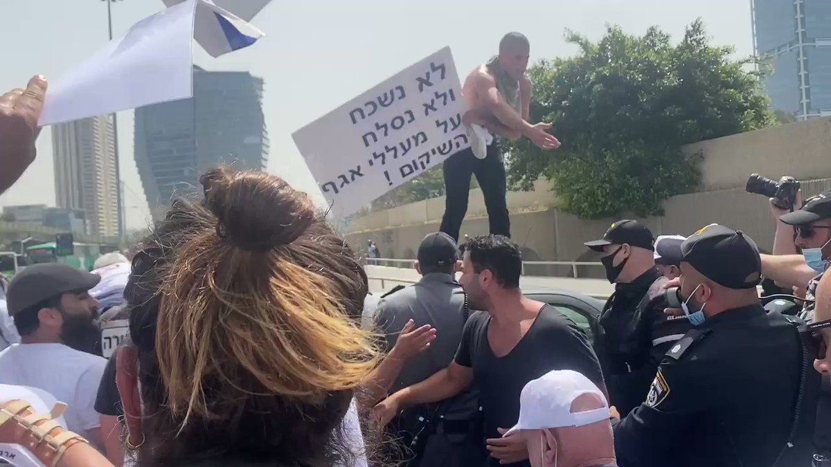 הצומת חסום, המפגינים יורדים לכיוון איילון