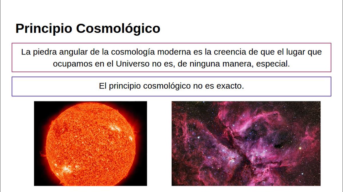 Es decir, en todos lados y pa' todos se ve exactamente igual. A esto le llamamos el Principio Cosmológico. Claro que esto no es exacto.