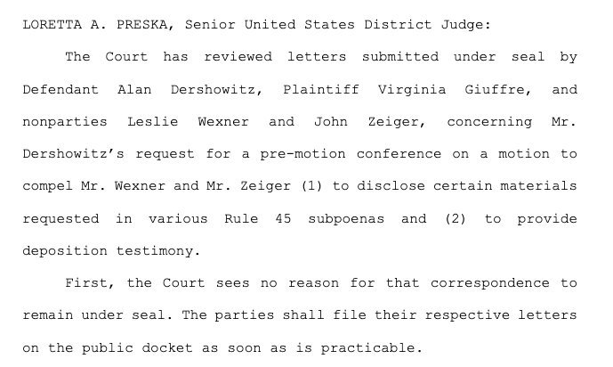 The last time Judge Preska unsealed files in the case, she let anonymous Does have an opportunity to oppose disclosure of a set of files.