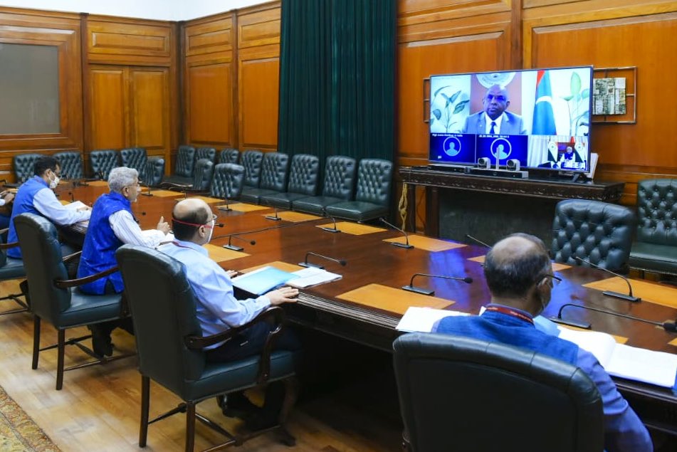 Warm and fruitful discussion with FM @abdulla_shahid of #Maldives. Agreed that the #COVID19 pandemic has brought the two nations even closer. We will be reliable partners in meeting both aspirations and challenges.
