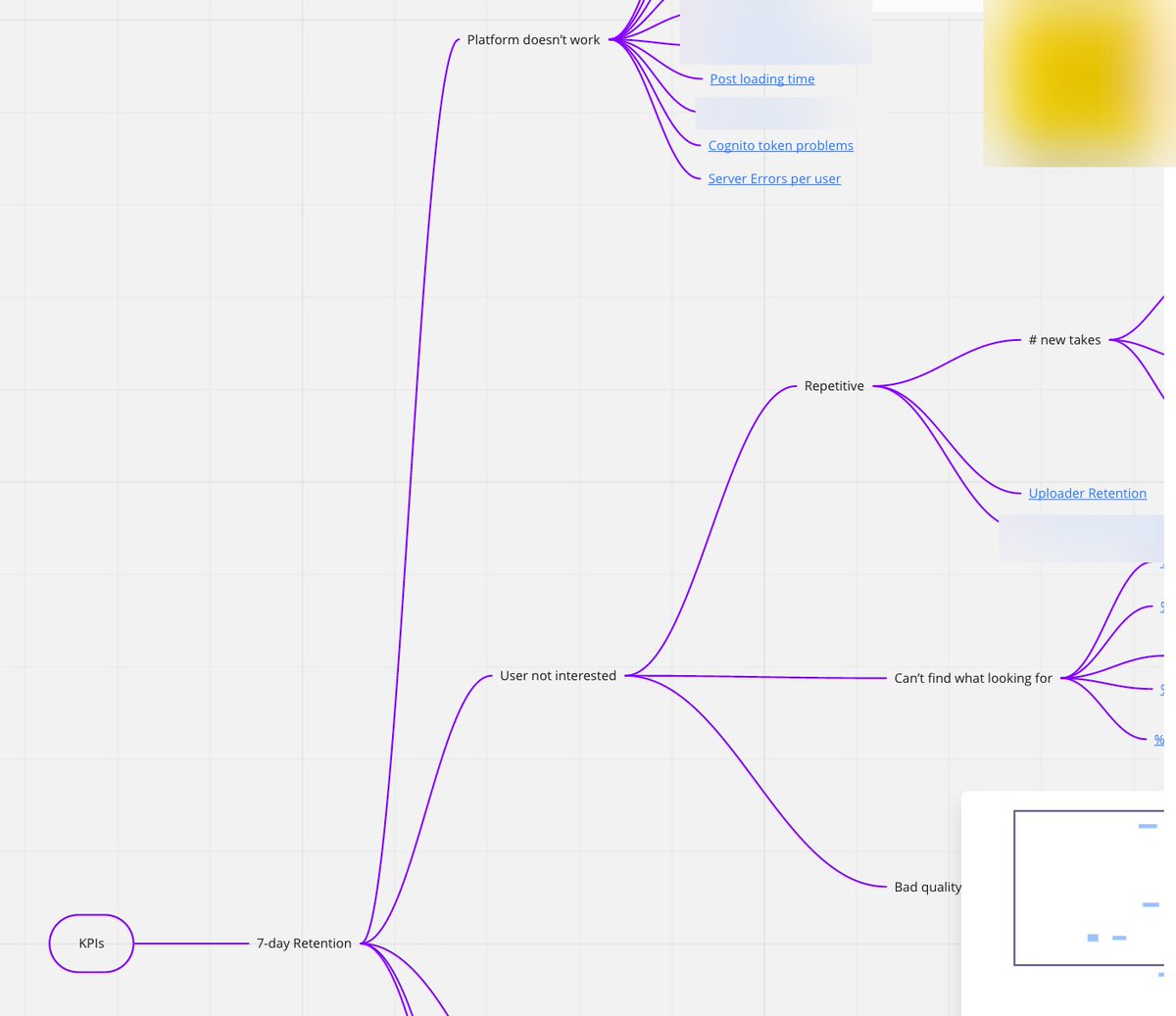 Повышение главной метрики идет за счет работы с каждым из узлов, отсюда и задача придумать фичи продукта, которые повысят метрики одного из этих узлов