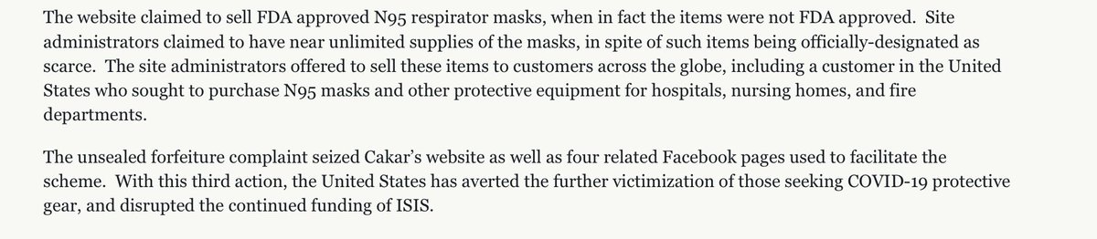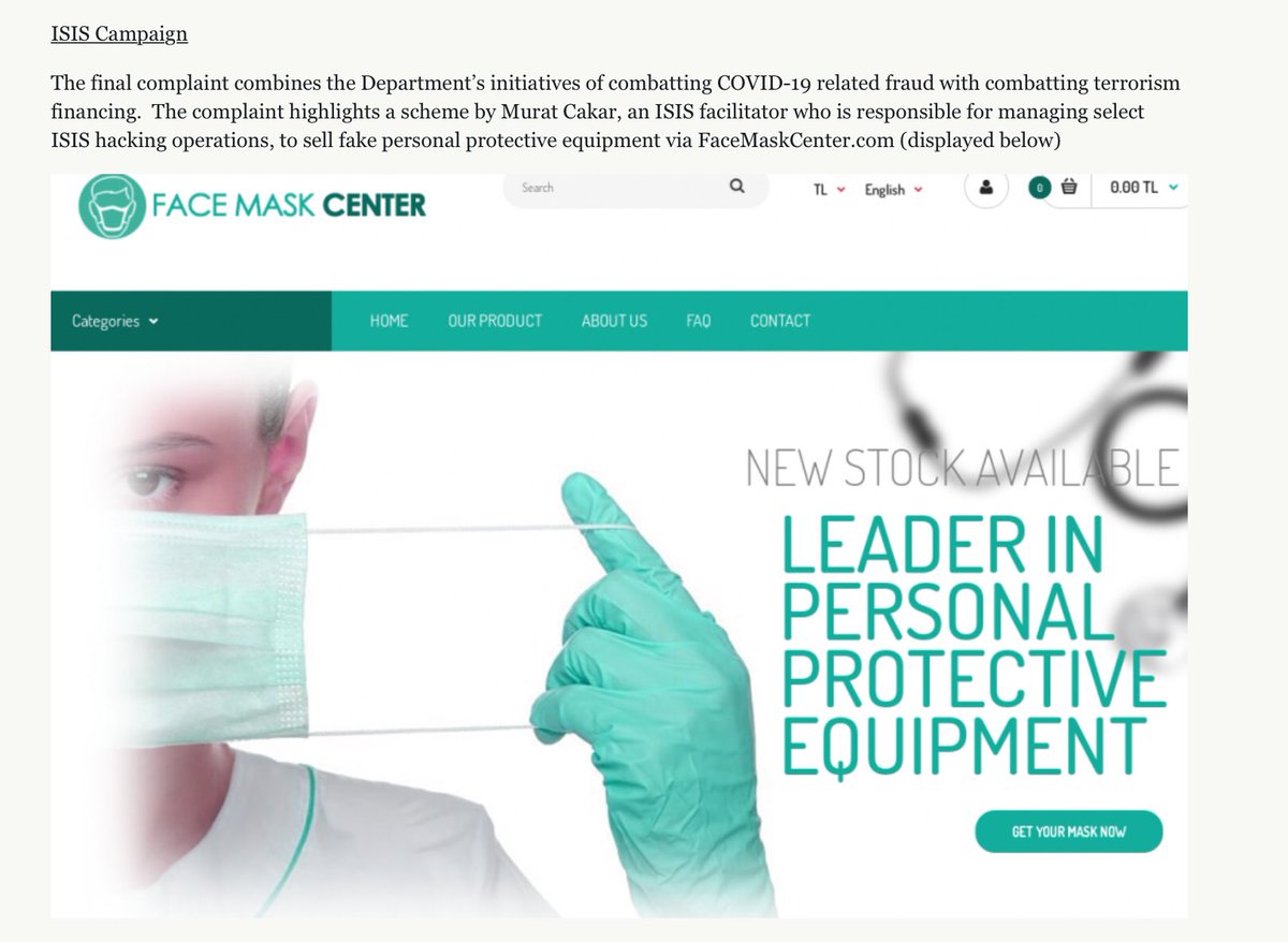 Jesus. ISIS sold fake N95 masks as way to find their terrorism through ISIS facilitator Murat Cakar, who even tried to sell these fake masks to a customer in the US!