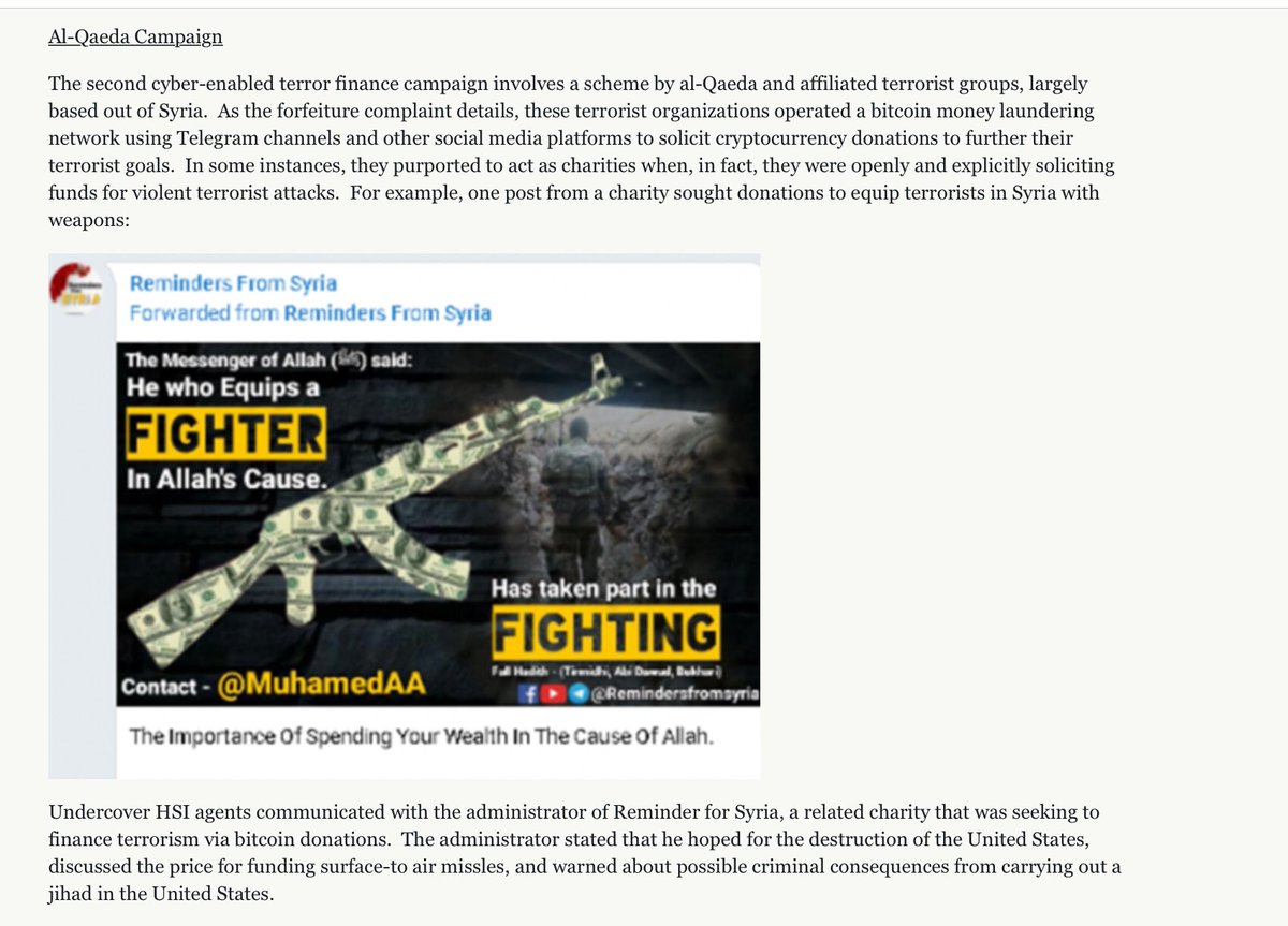 The US seized $ millions, 4 websites, 4 Facebook pages, and over 300 crypto currency accounts.