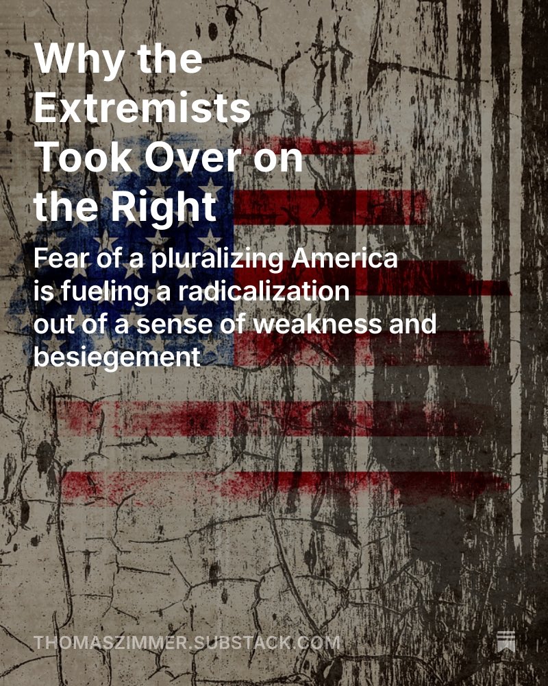 I wrote about the escalating sense of besiegement that has fueled the rise of dangerous people and truly radical ideas that fully define the Right today.
