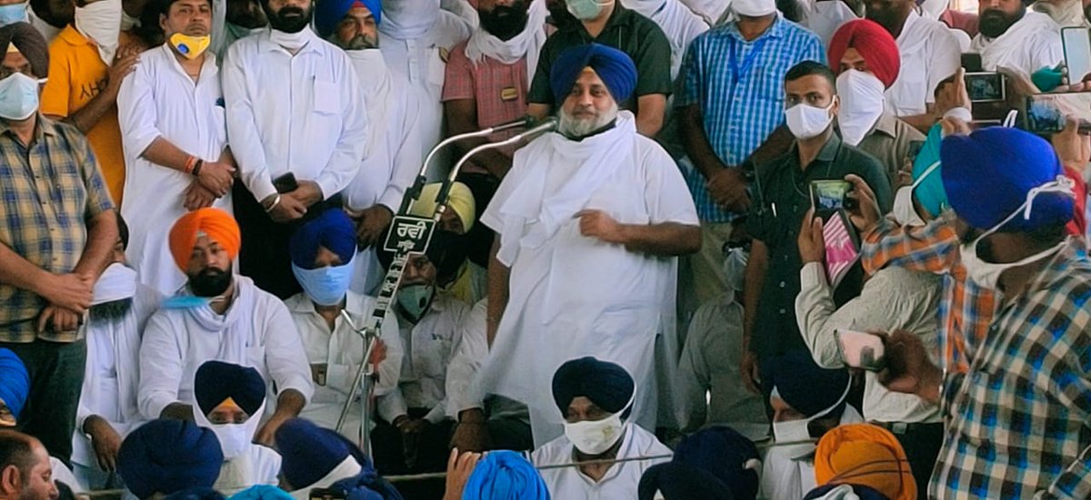 .@Akali_Dal_ has always championed the cause of the #farmers and has made supreme sacrifices to safeguard their interests. That legacy can’t and will not be compromised or diluted, no matter what price we have to pay. 2/4