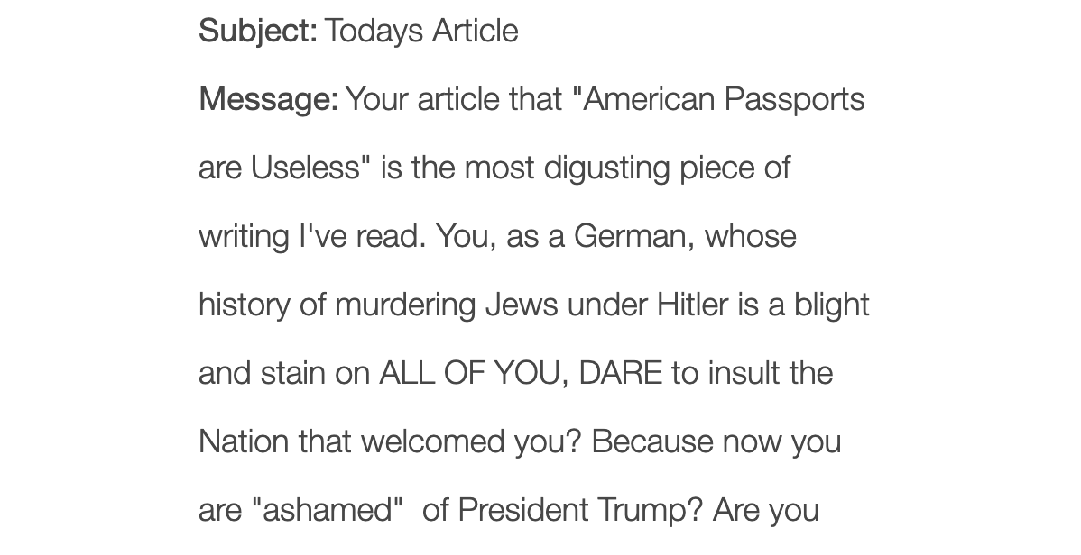 Getting hate mail is part of the job at this point.