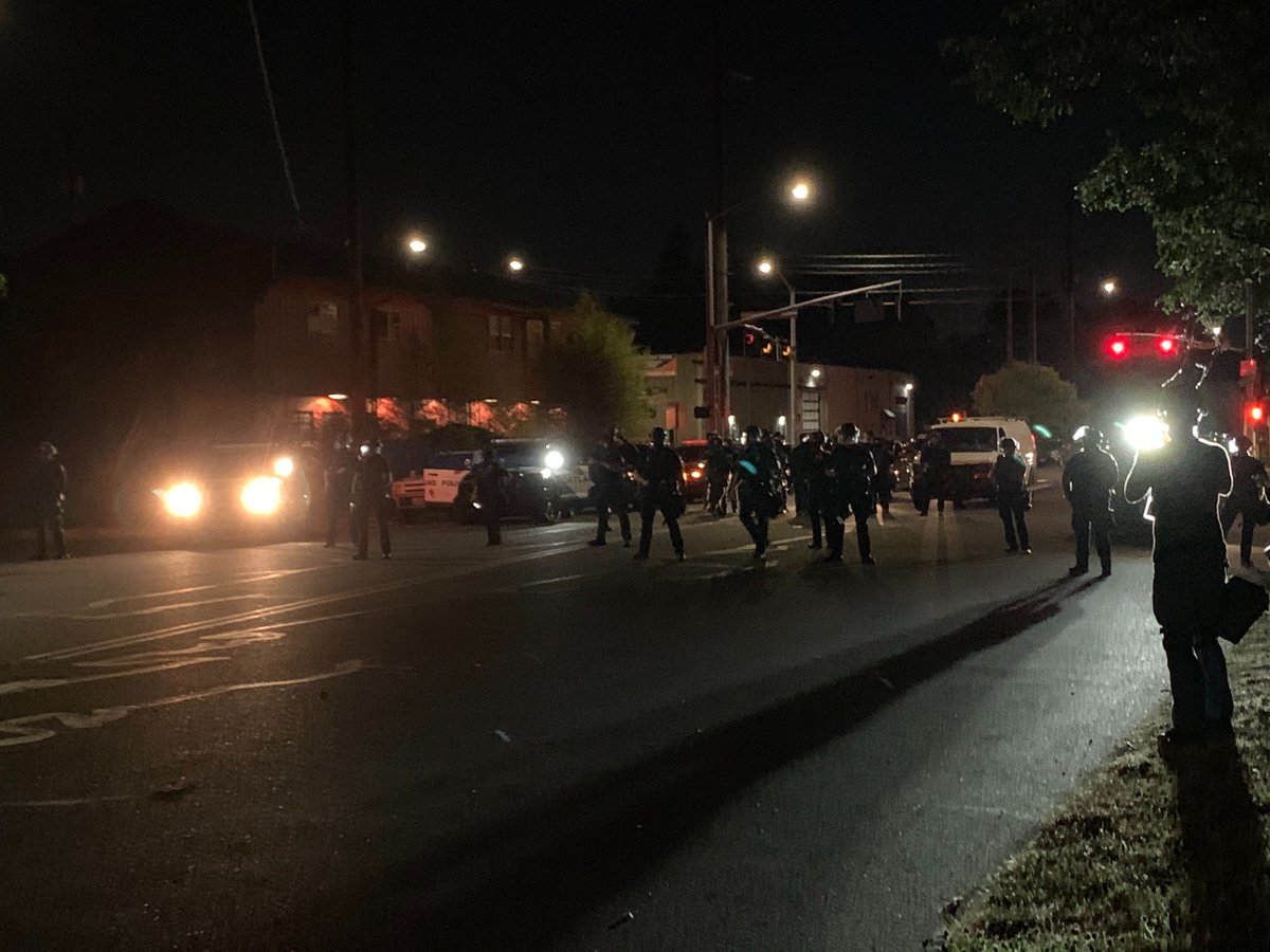 After a brief standoff, protesters changed plans and headed east on Killingsworth toward the North Precinct. But they were met by another group of officers at Mississippi, several blocks away from the precinct.