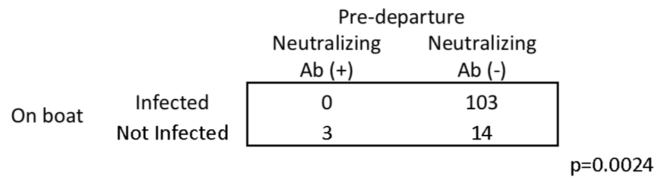 But that doesn't mean nobody at all is immune from infection. In that fishing boat study (medrxiv.org/content/10.110…), a small number (3 out of 120) had neutralising antibodies, perhaps from earlier SARS-CoV-2 infection, and they didn't get infected again. 4/