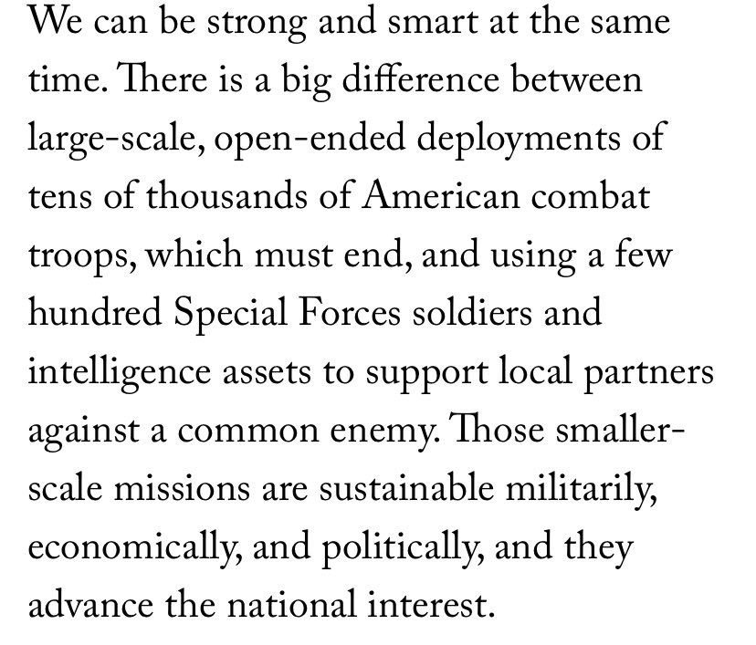 3. Biden’s CT policy has a major role for special forces and intelligence assets working with “local partners” targeting common enemies. Interesting — though not surprising— he doesn’t mention air strikes or drones.