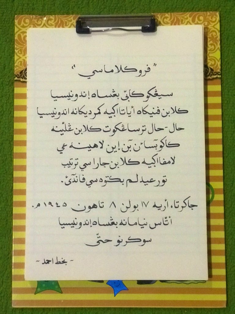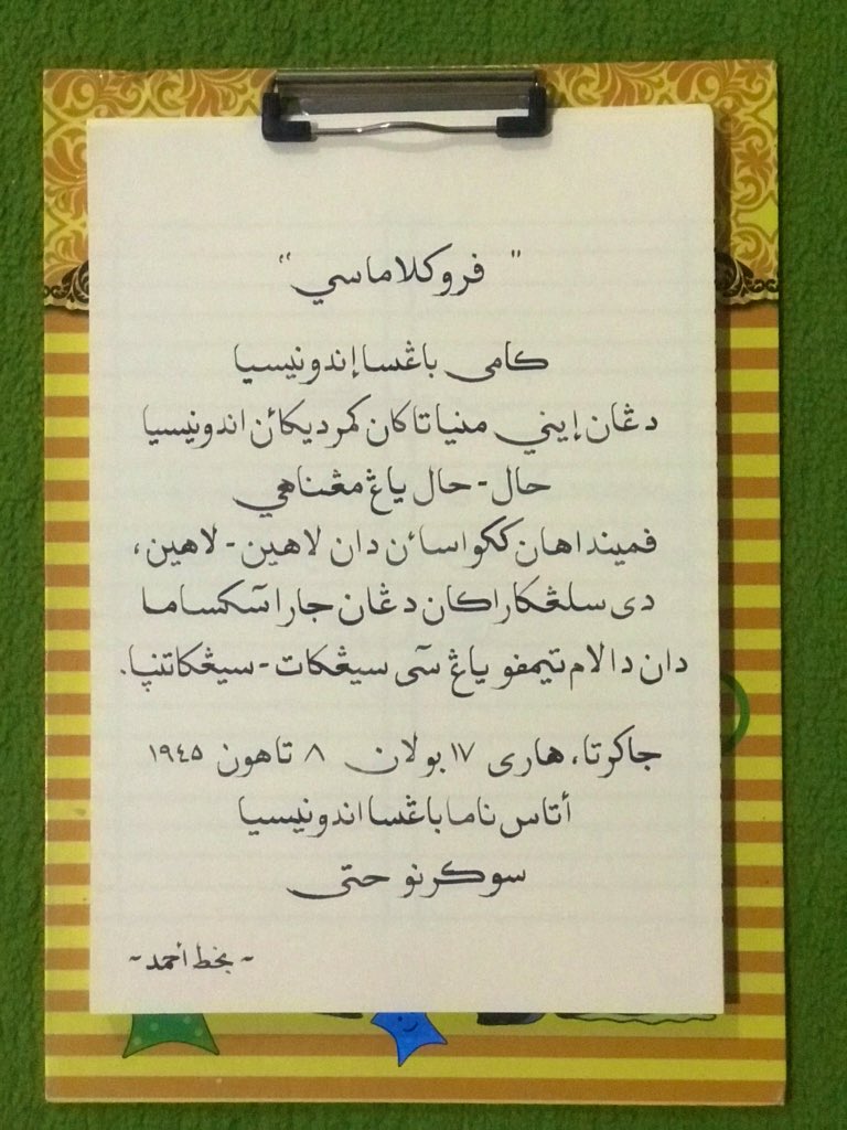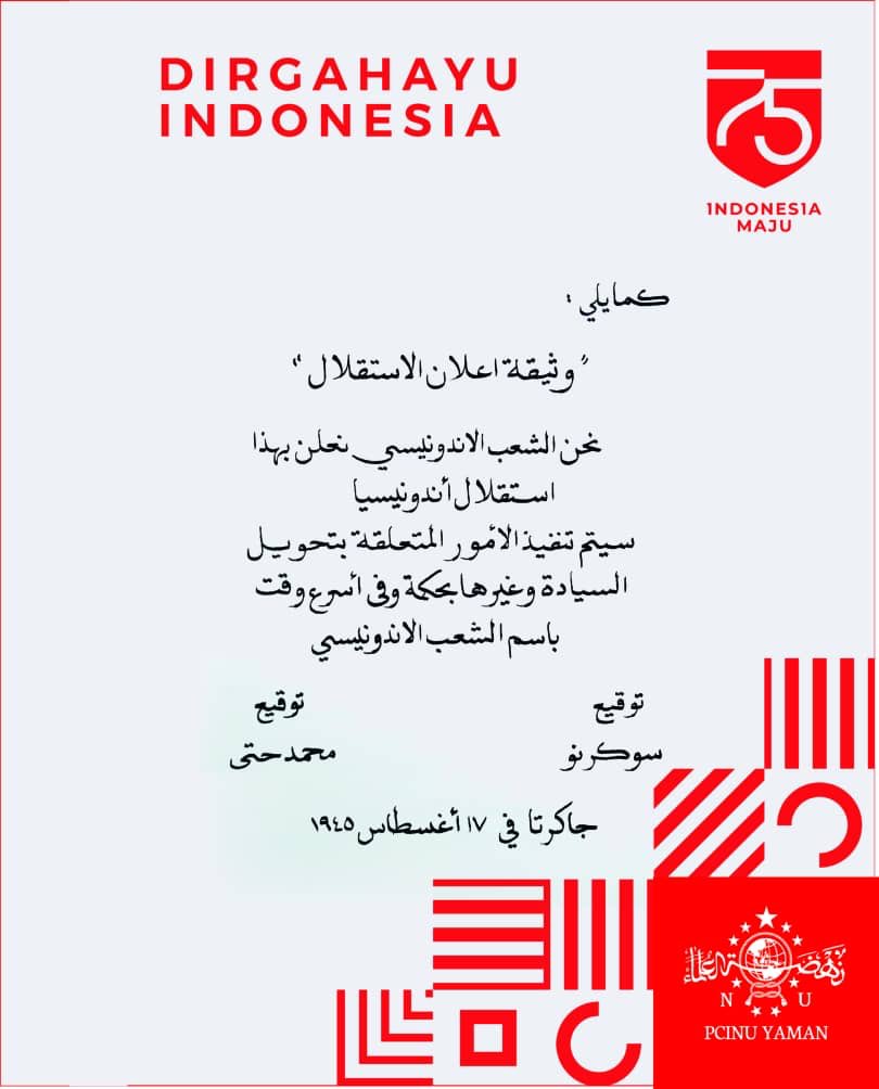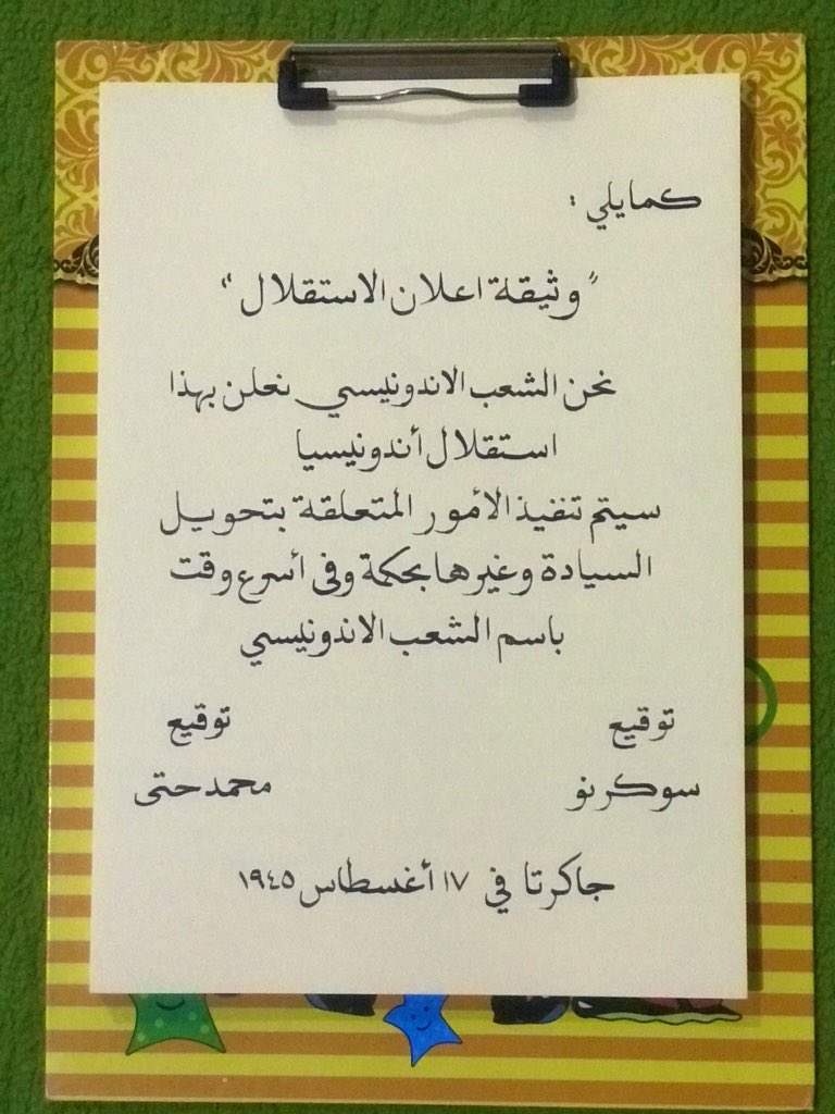 Proklamasi dalam bentuk bahasa Arab!