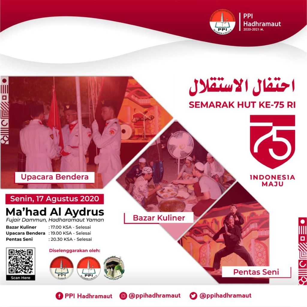 Semarak HUT RI KE-75 juga dapat kami rasakan, insyaallah besok sore seluruh pelajar di Hadramawt akan mengadakan upacara bendera, bazar kuliner makanan Indonesia juga pentas seni.