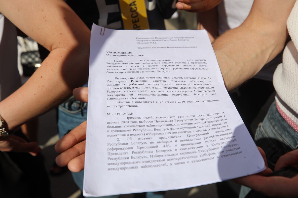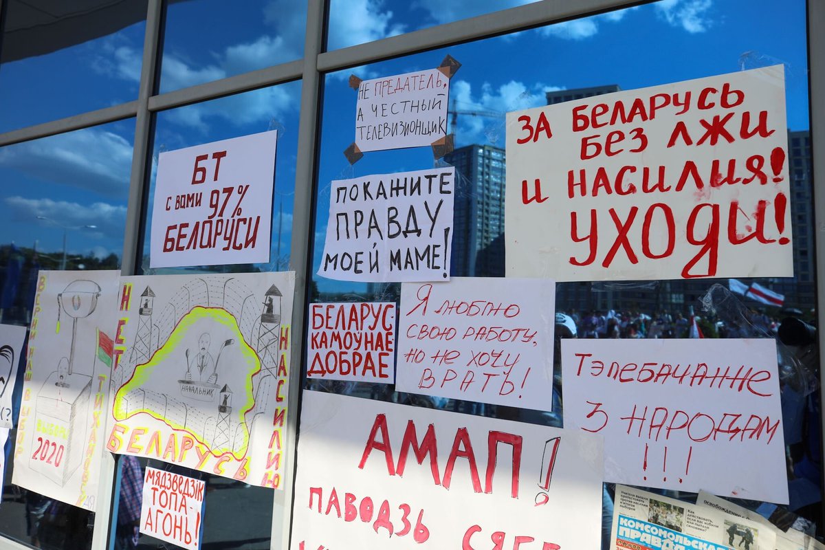 300 employees of State Belteleradio (main propaganda channel) signed the petition to cancel elections results and conduct free and fair elections. The door of Belteleradio looks like a billboard right now