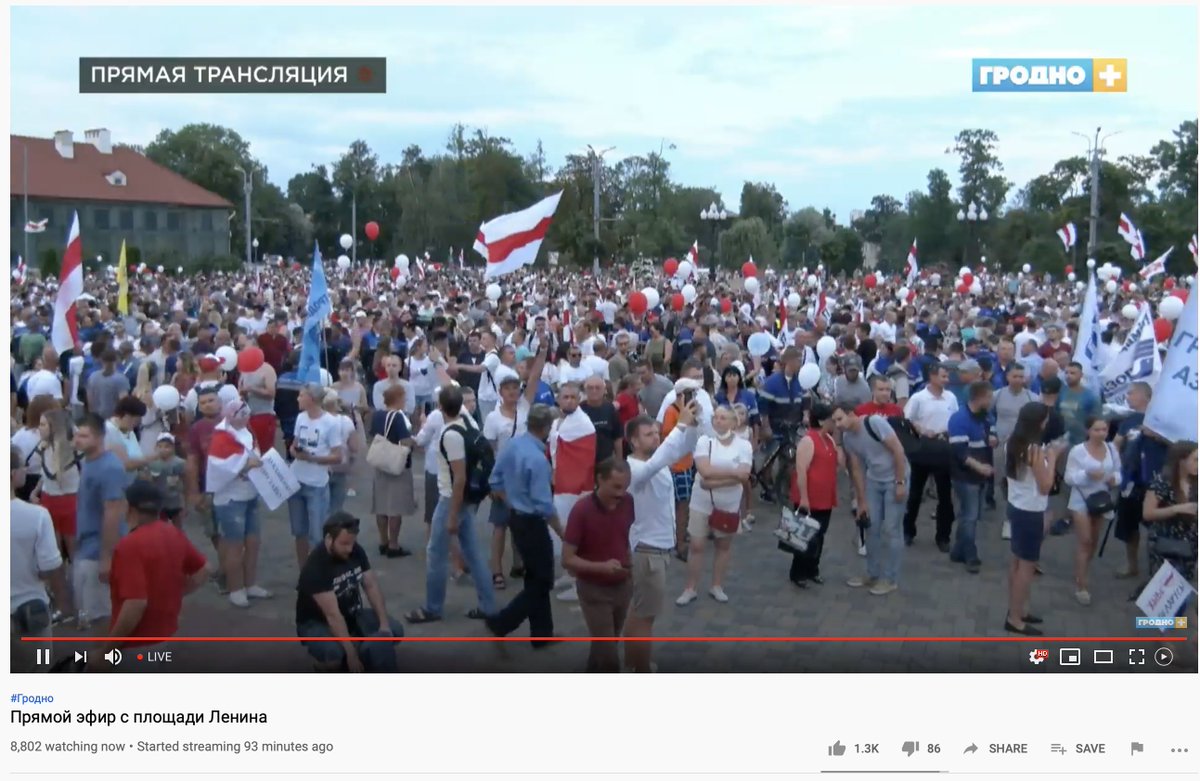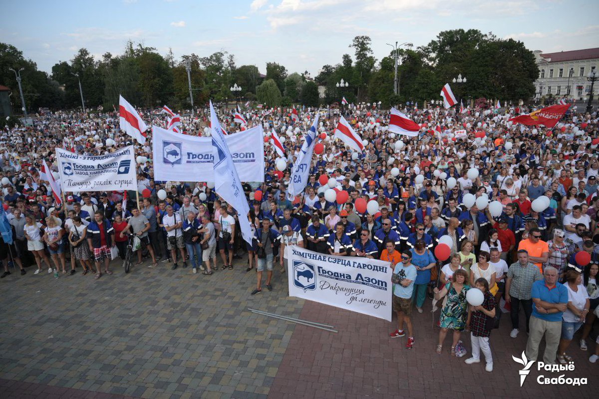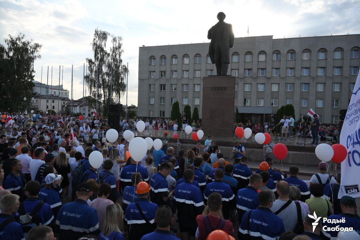 In Hrodna, protesters and workers who supported the strike joined the massive rally. It takes place near the Lenin monument (quite symbolic). The rally is live-streamed on the state television channel.