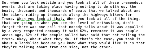 @realDonaldTrump: talks about boaters and bikers, claims 62 percent of people told a pollster they lie to pollsters.