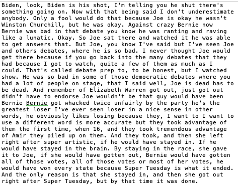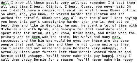@realDonaldTrump: Lowers expectations, rants about primary, repeats false claims about @ewarren costing @BernieSanders votes.
