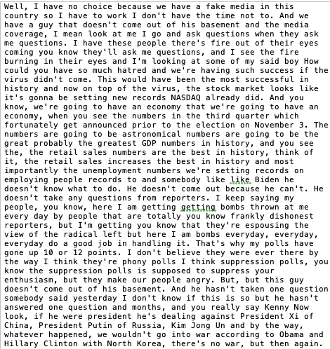 @realDonaldTrump: [rambles and lies about @JoeBiden never taking questions]