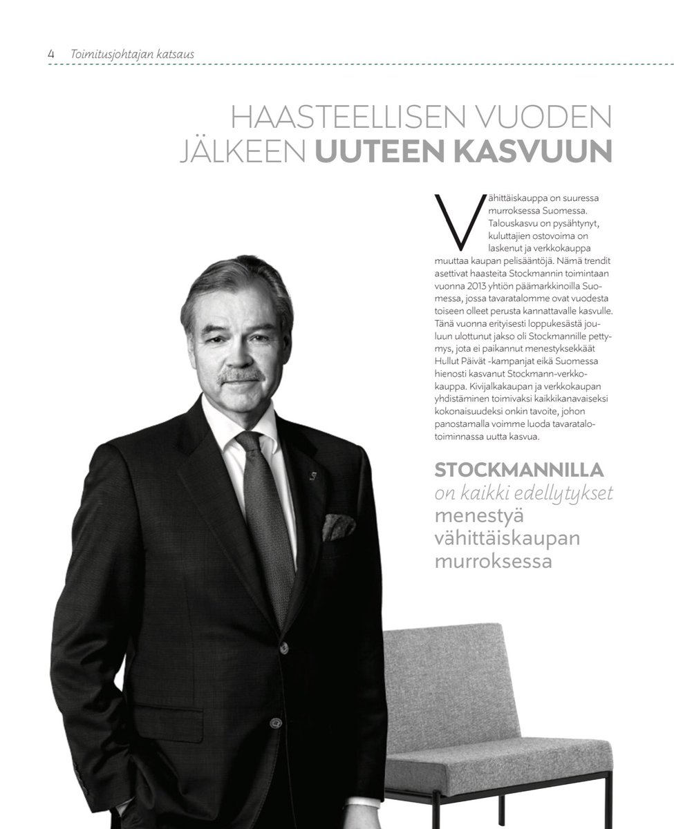 Stockmannin vuosikertomusten tj:n katsauksista maalautuu aika karu tarinan kaari. Vuosi vuoden perään kerrotaan Venäjän valloituksesta ja Hgin tavaratalosta. Kunnes yhtäkkiä vuonna 2013 (kuvassa) tavara onkin tuulettimessa verkkokaupan läpilyönnin vuoksi. stockmanngroup.com/fi/vuosikertom…
