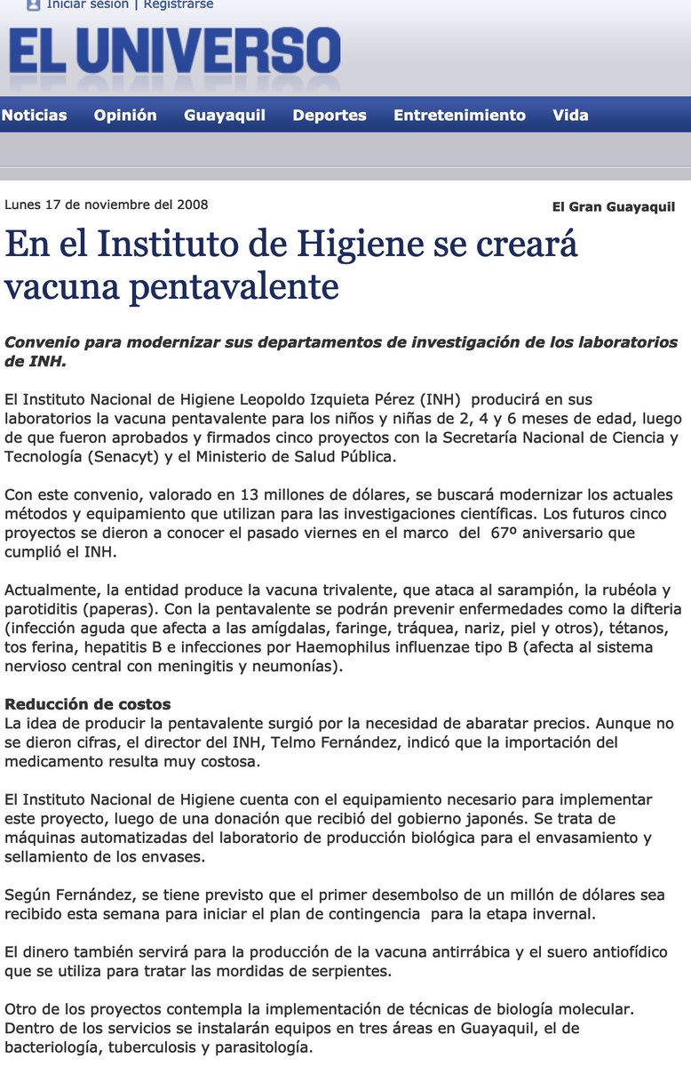 Se hace varios lotes para estudio clínico y 2012 después de la Escisión del INH en INSPI la producción empezaria a morir 4/10