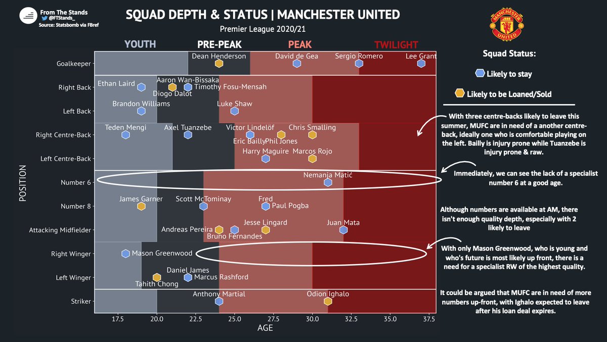Firstly, especially given the rumored departures, United struggle for depth and quality in key areas, specifically down the right, in the heart of midfield, and at the back.