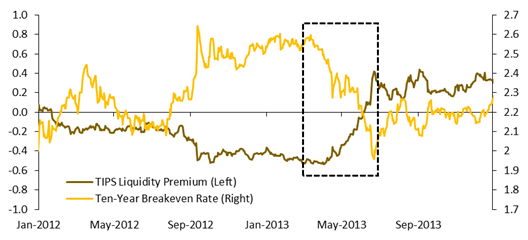 * Breakevens/TIPS rates are moving mostly because of liquidity, not inflation expectations.