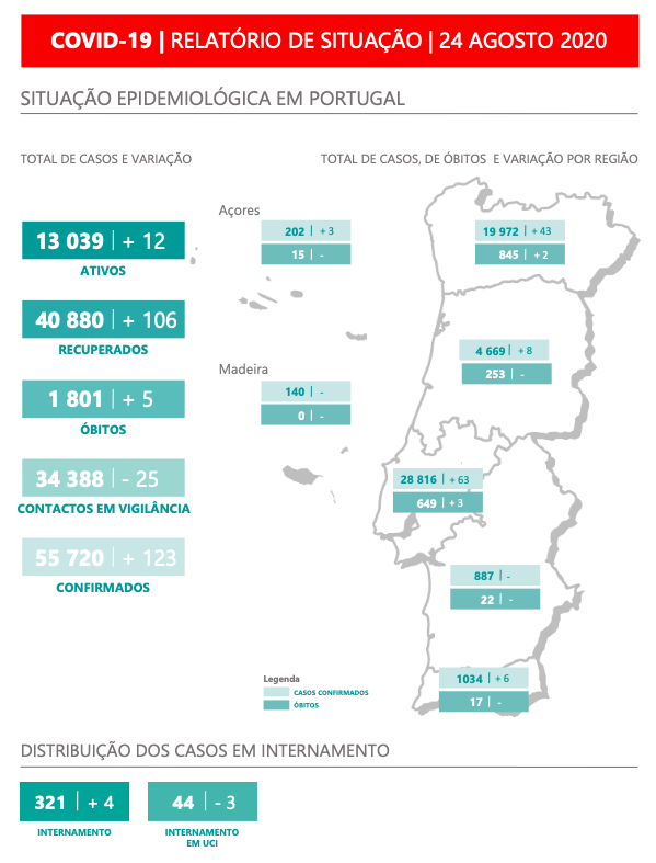 • 125 casos confirmados nas últimas 24h (57.1% do país)