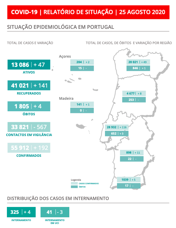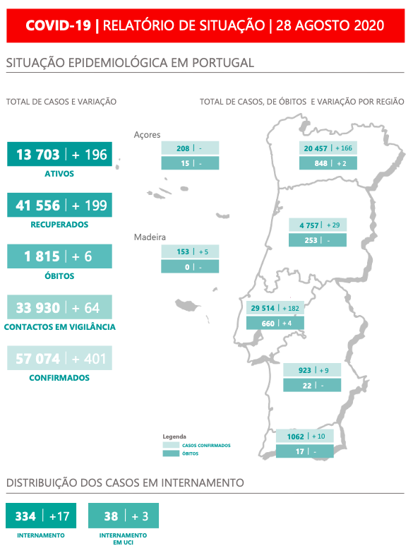 • 170 casos confirmados nas últimas 24h (58.4% do país)