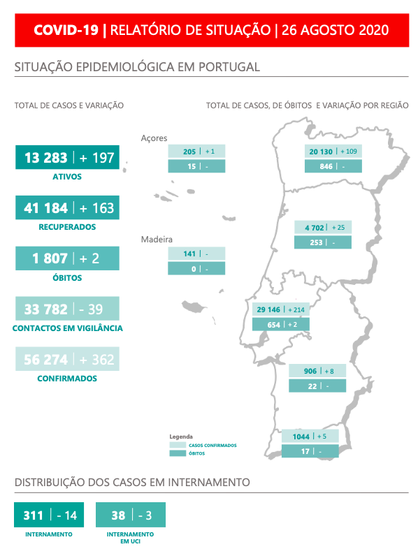 • 214 novos casos confirmados nas últimas 24h (59.1% dos novos casos no país – número mais alto desde 24 Julho)