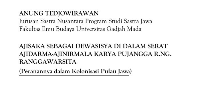 "Cerita Ajisaka iku aja dianggep temenan kelakon, luwih becike cerita Ajisaka mau dimaknani sbg penanda masuknya peradaban India (Hindhu-Buddha) neng tanah Jawa"