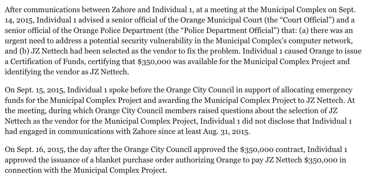 After Zahore and the city official conspired, The Orange city official told officials at the Orange Municipal Court and Police Dept they had an urgent security issue in their network & that JZ Nettech was picked to fix it.