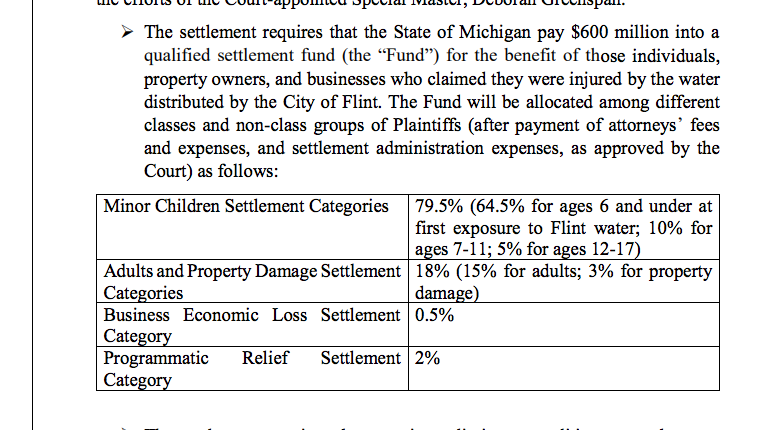 Here is a summary of the state's settlement with victims of the #FlintWaterCrisis.