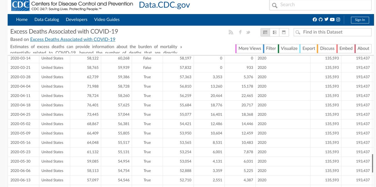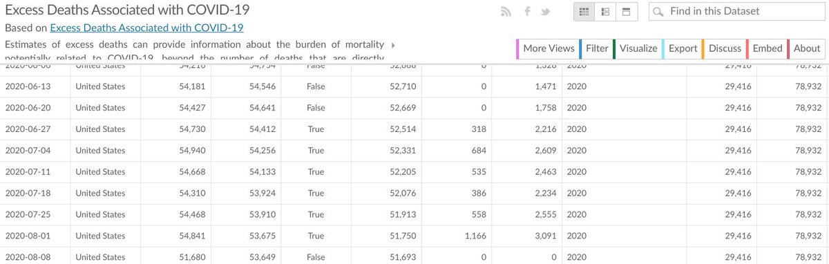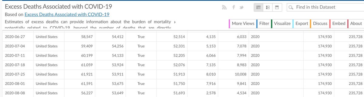(2/3) This is the current display of all deaths in 2020 with and without Covid-19 (unweighted). Using lower estimate (2xSD), we're 135,593 deaths over normal; it's 193,437 using the higher estimate... the lower 5Y ave range.