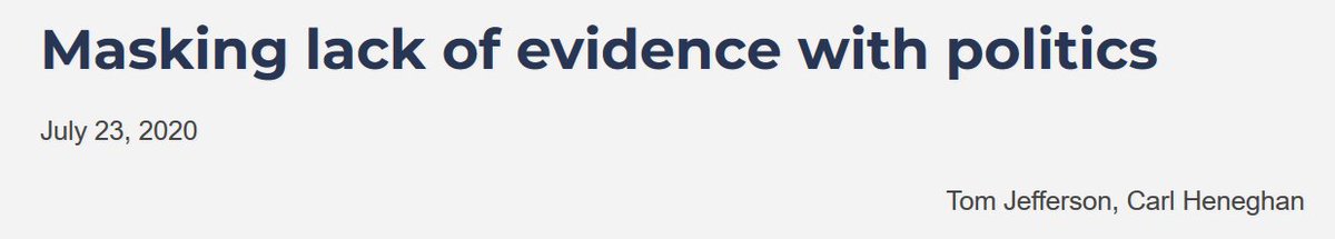 1/n Une opinion étayée sur les recommandations concernant le port du masque par @carlheneghan et Tom Jefferson, dont le titre résume bien le propos cebm.net/covid-19/maski…