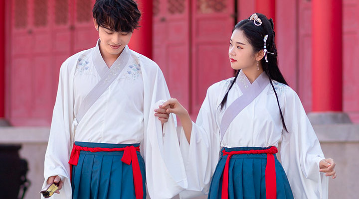 Pakaian Hanfu yang berkolar luas kiri tutup kanan diubah jadi kolar sempit.