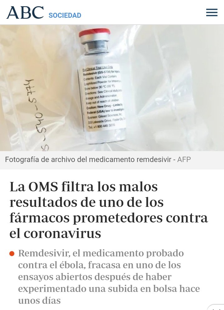 Así pues, el Remdesivir parecía destinado al cajón de los fracasos farmacéuticos.👇👇👇