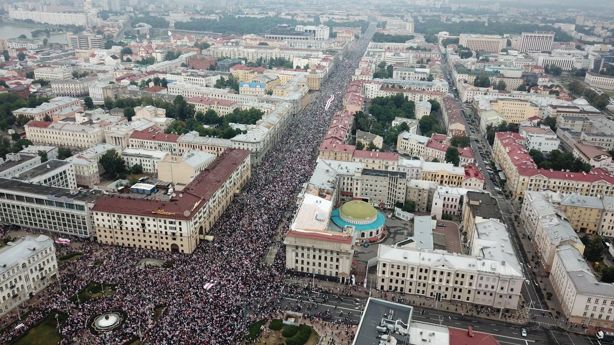 Dozens of thousands gathered already and waiting for people coming from regions. People are chanting ”Tribunal!”, ”Lukashenka to police van”, ”Long Live Belarus!”