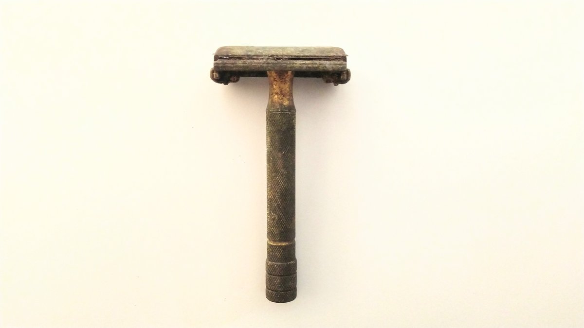 Y hablando de higiene: he encontrado una maquinilla de afeitar típica de los años 20-40. La casa donde se encuentra el basurero no tuvo cuarto de baño hasta los años 80. El agua se traía de la fuente, las necesidades de hacían en la cuadra.- > Image