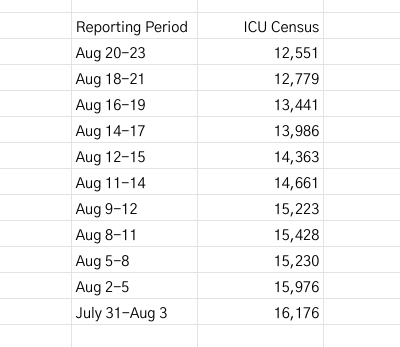 Texas ICU census July 30 - Aug 23